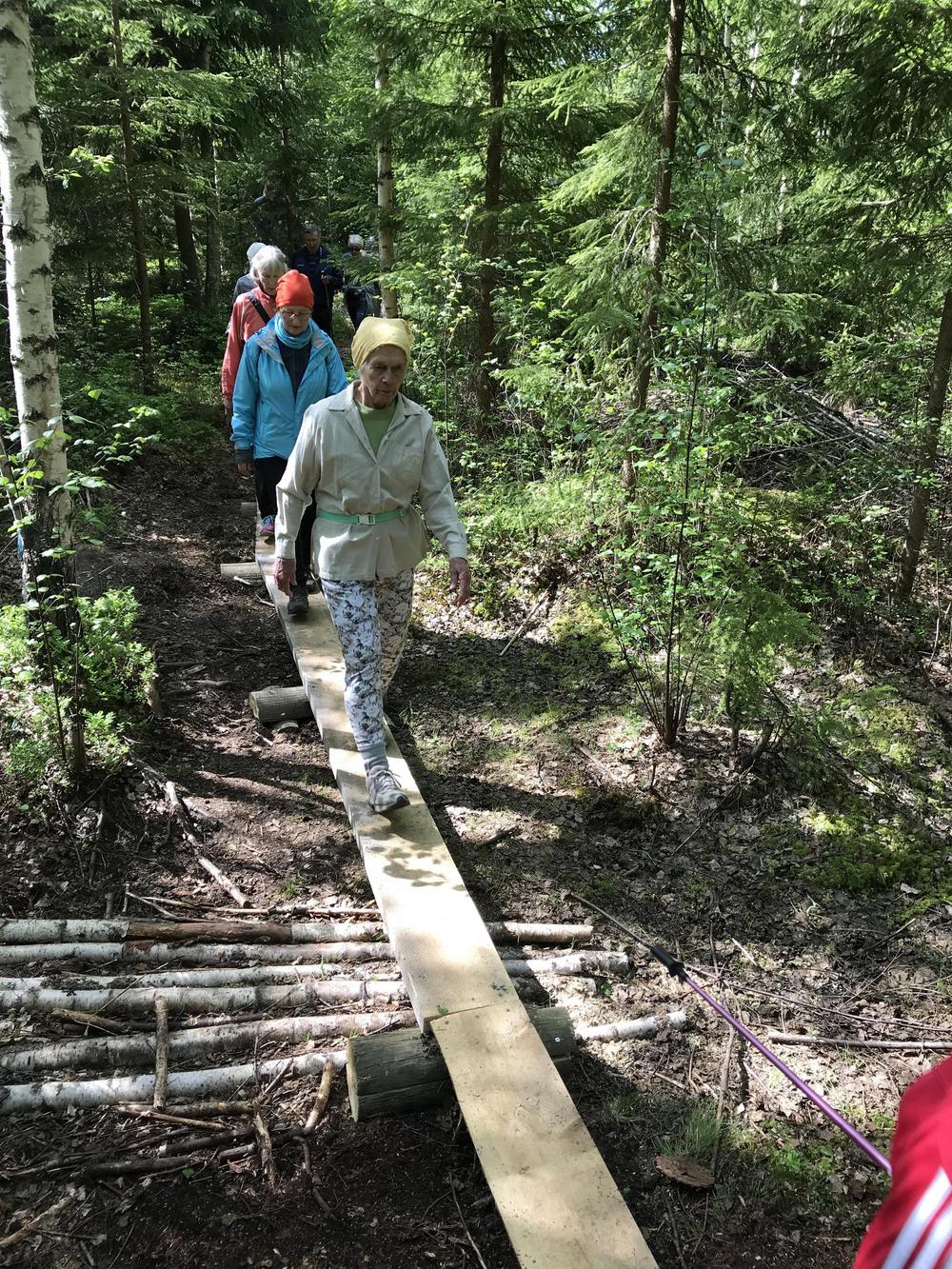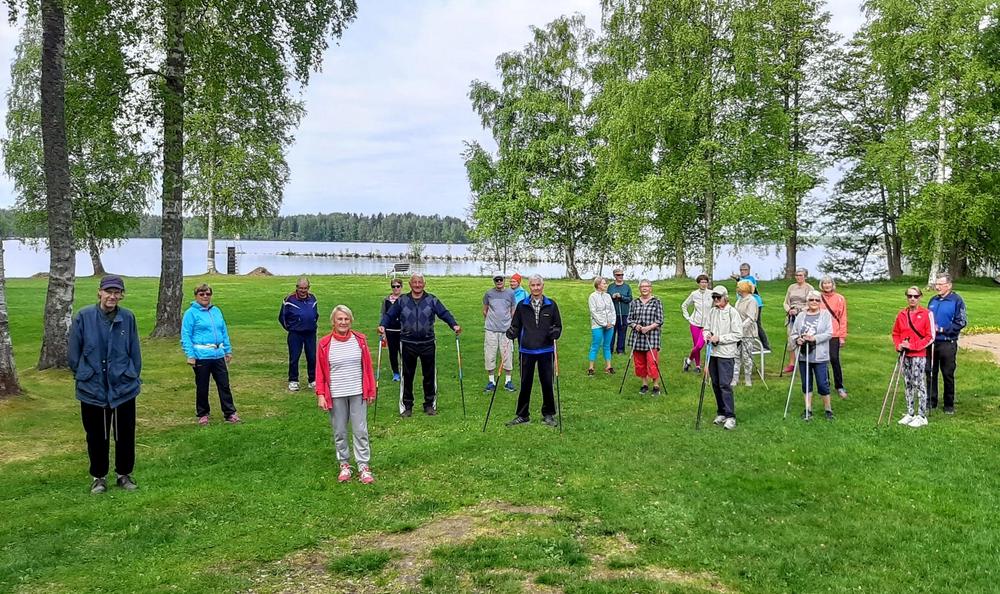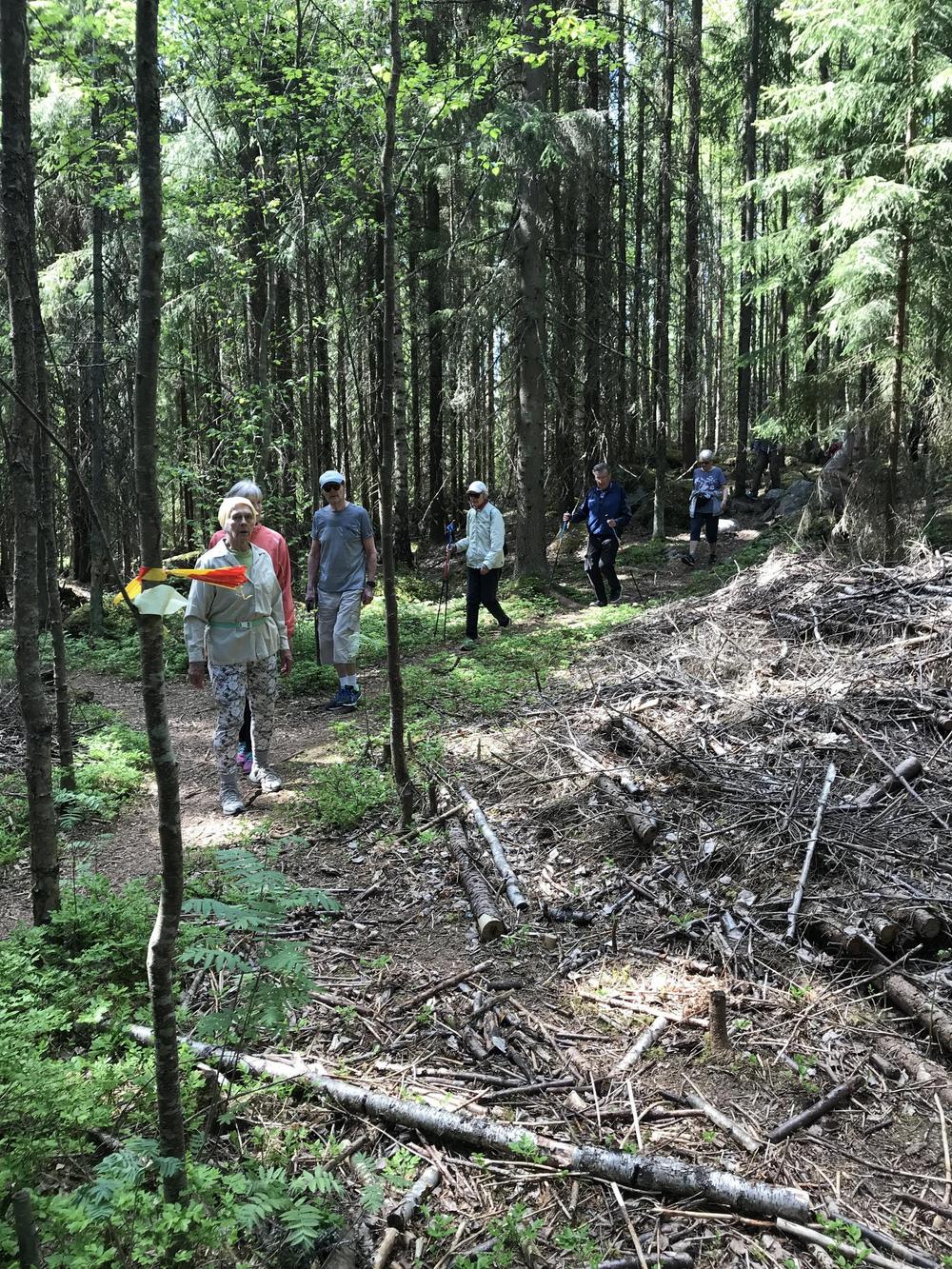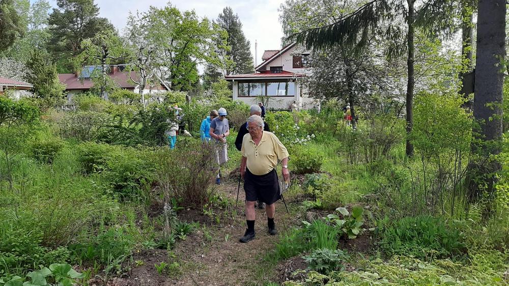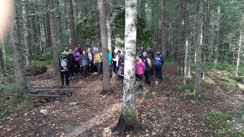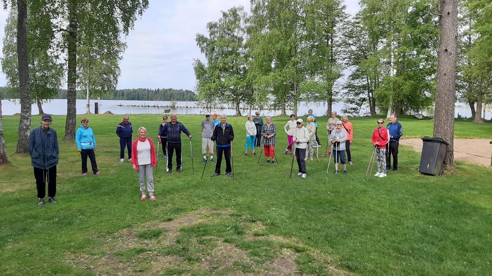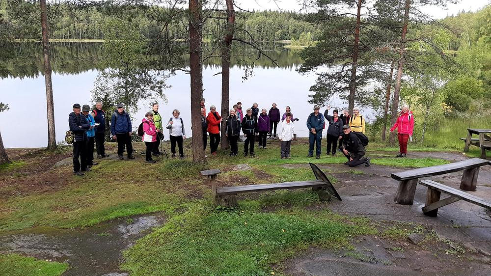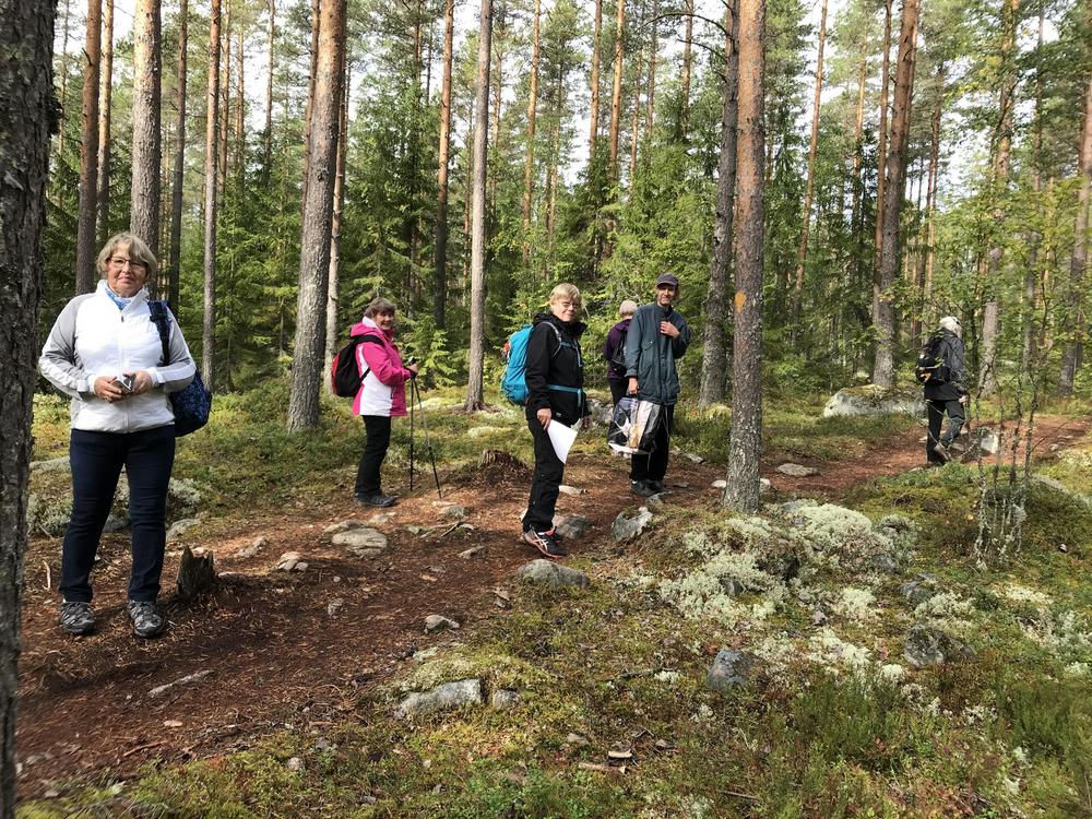 Ensimmäinen kävely koronatauon jälkeen. Kokoontuminen Pakanranta. Mukana kävelemässä 23 senioria. Kävely alkoi yllätyskierroksella Marja ja Kosti Majaran puutarhassa Pakanrannassa. Tästä matka jatkui rantareittiä puhdistamon rantaan ja siitä ylös metsäpoluille.