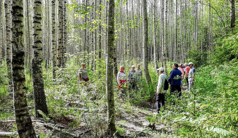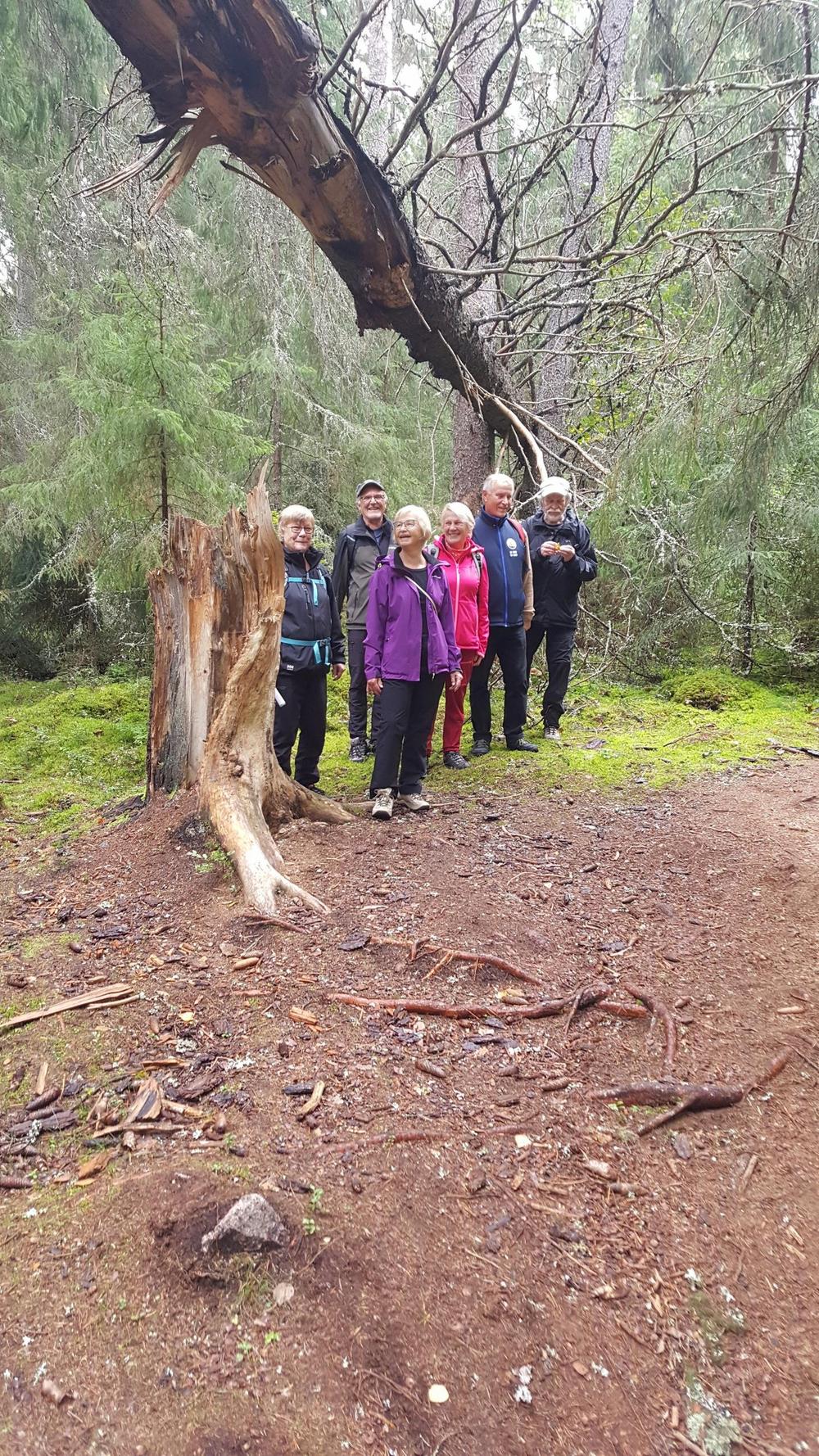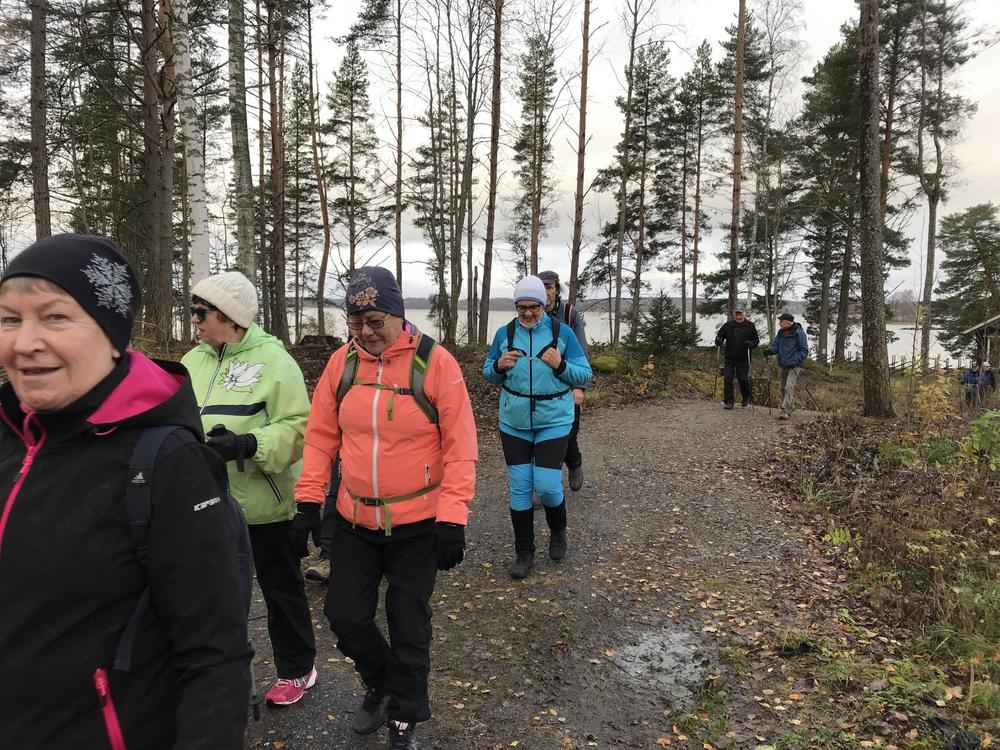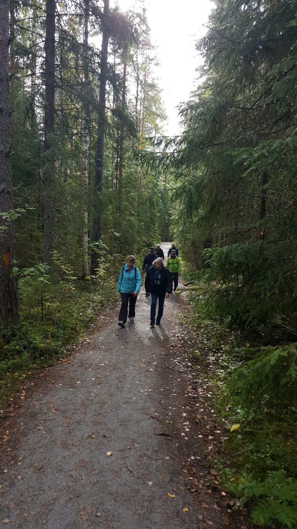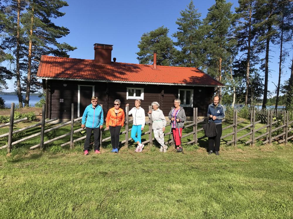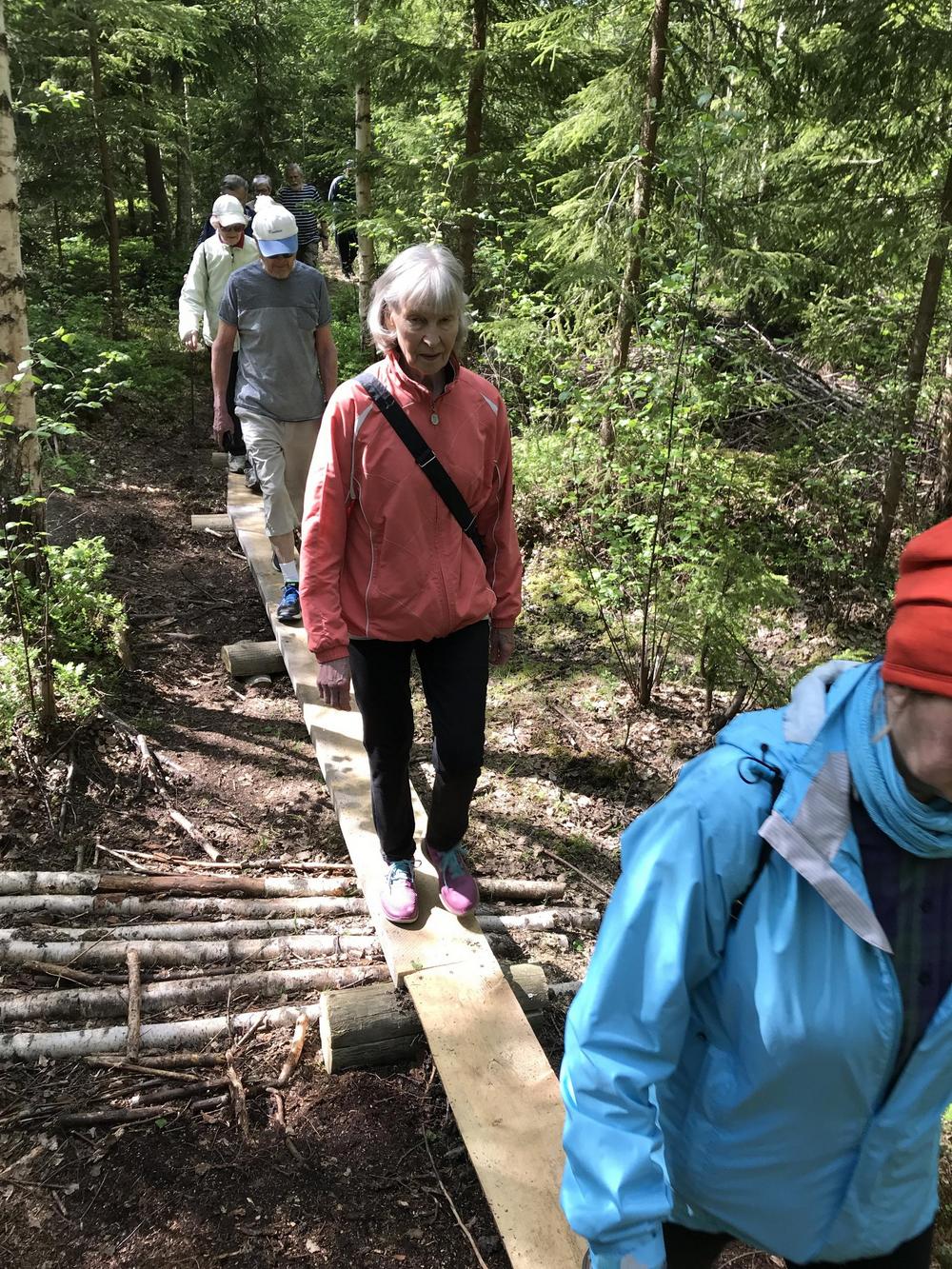 Ensimmäinen kävely koronatauon jälkeen. Kokoontuminen Pakanranta. Mukana kävelemässä 23 senioria. Kävely alkoi yllätyskierroksella Marja ja Kosti Majaran puutarhassa Pakanrannassa. Tästä matka jatkui rantareittiä puhdistamon rantaan ja siitä ylös metsäpoluille.