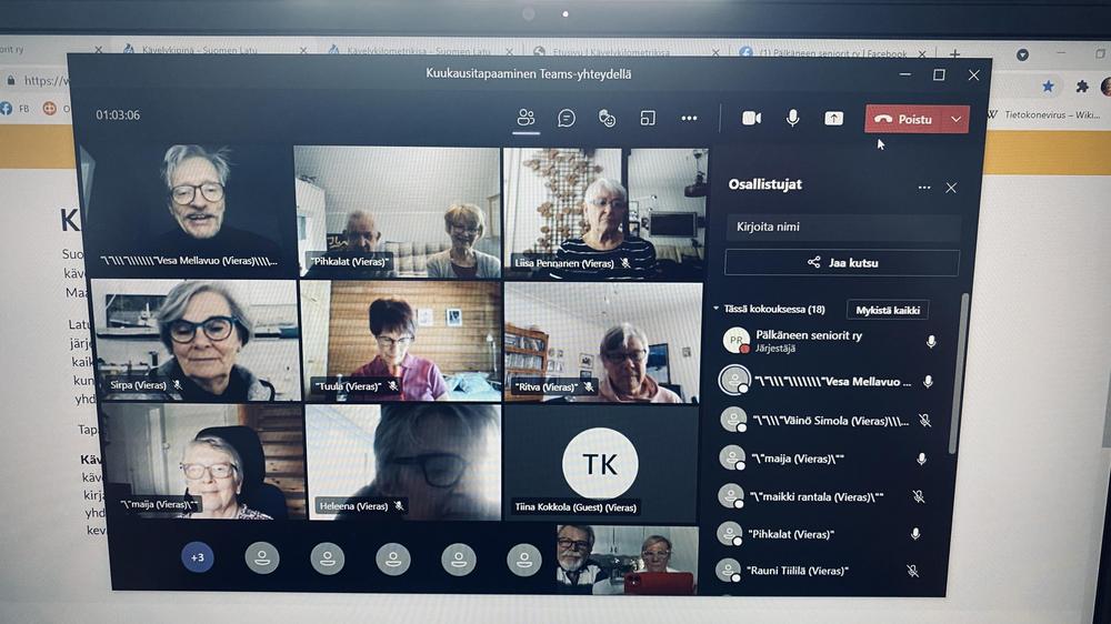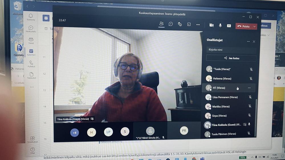 25.03.2021 Yhdistyksen historian ensimmäinen kuukausitapaaminen etänä Teams-sovelluksen kautta. Tapaamiseen osallistui 18 senioria. Tämäkin on tapa kohdata näin korona-aikana. Keskustelua käytiin varapuheenjohtaja Tiina Kokkolan johdolla.