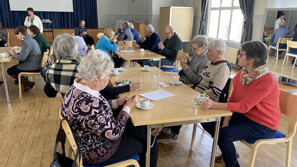 Syyskauden ensimmäisessä kuukausitapaamisessä 29.9. Nuijantalolla meitä oli yli 30 senioria. Saimme vieraaksemme Pälkäneen yhteisötalo -hankkeen vetäjän Seppo Kääriäisen. Alunperin senioritalona tunnettu hanke on edennyt ja kaava on hyväksymisvaiheessa. 12 asunnon 3-kerroksinen talohanke Onkkaalassa kirvoitti hyvää keskustelua ja kiinnostusta. Kuten aina nautimme ensin maittavan keittolounaan ja jälkiruuaksi suussa sulavaa omenapiirakkaa.