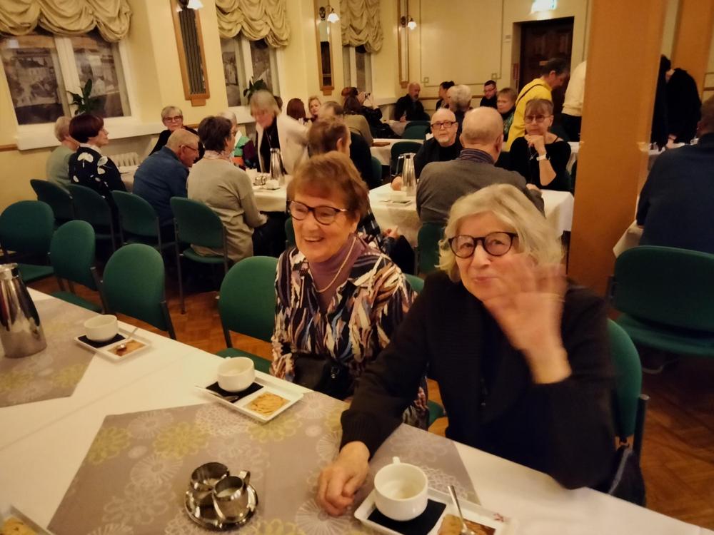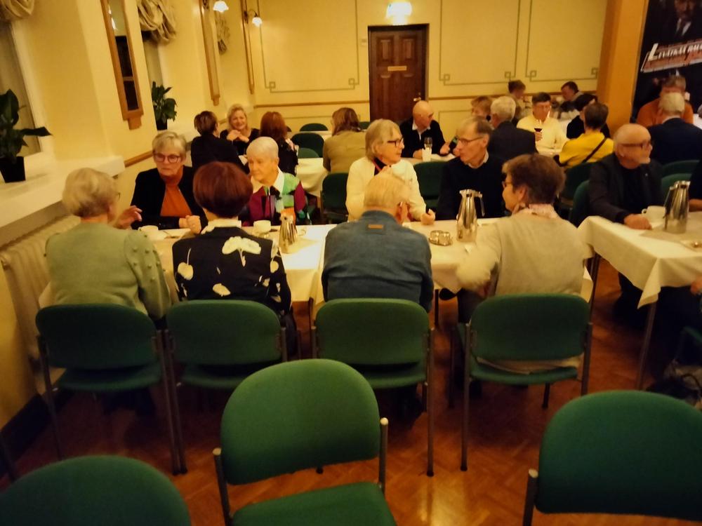 Neljäkymmentä Pälkäneen senioria lähti tutustumaan ihan uudenlaista tulkintaan vanhasta tutusta tarinasta. Väliajan ihanan leivoskahvin äärellä vaihdettiin kuulumiset ja arviot esityksestä.