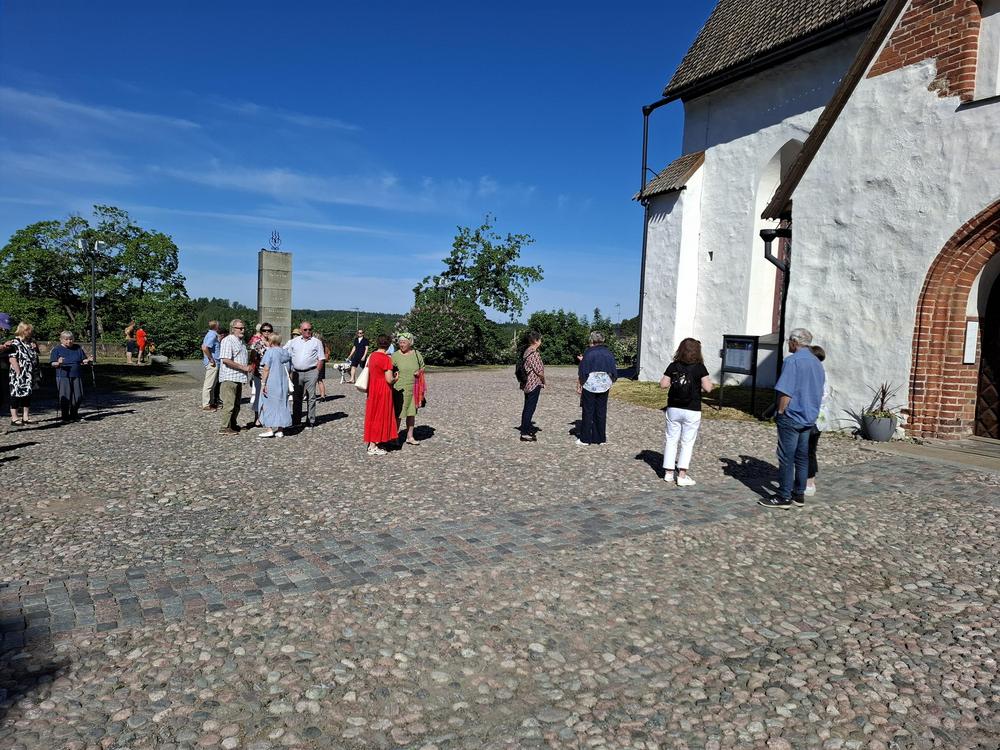 Aurinkoinen, kerrassaan sopiva sää alkukesän retkelle Porvooseen. Lähes 40 senioria nousivat Hankin bussiin aamuvarhaisella. Niinpä jo klo 10 päästiin kuulemaan mainiota opastusta kirkossa. Päivän aikana ehdimme käydä vielä Runebergin kotimuseossa, Albert Edelfeltin taidemuseossa sekä päivän päätteeksi tehdä makeimmat ostokset Brunbergin makeistehtaan myymälässä. Päivään mahtui myös maittava lounas sekä tutustumista ja ostoksia Porvoon viehättävässä vanhassa kaupungissa. Nämä kuvat nappasi Tiina Kokkola.