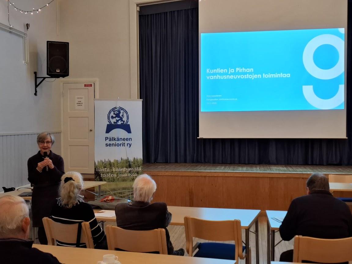 Ennen kokouksen alkua Tiina Leppänen, Kangasalan vanhusneuvoston puheenjohtaja ja Pirhan vanhusneuvoston jäsen piti esitelmän Pirhan vanhusneuvoston ja kuntien vanhusneuvoston yhteistyöstä.