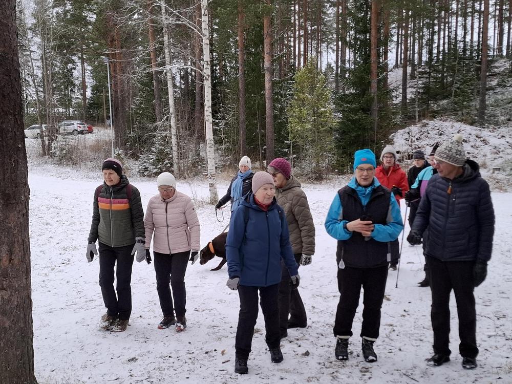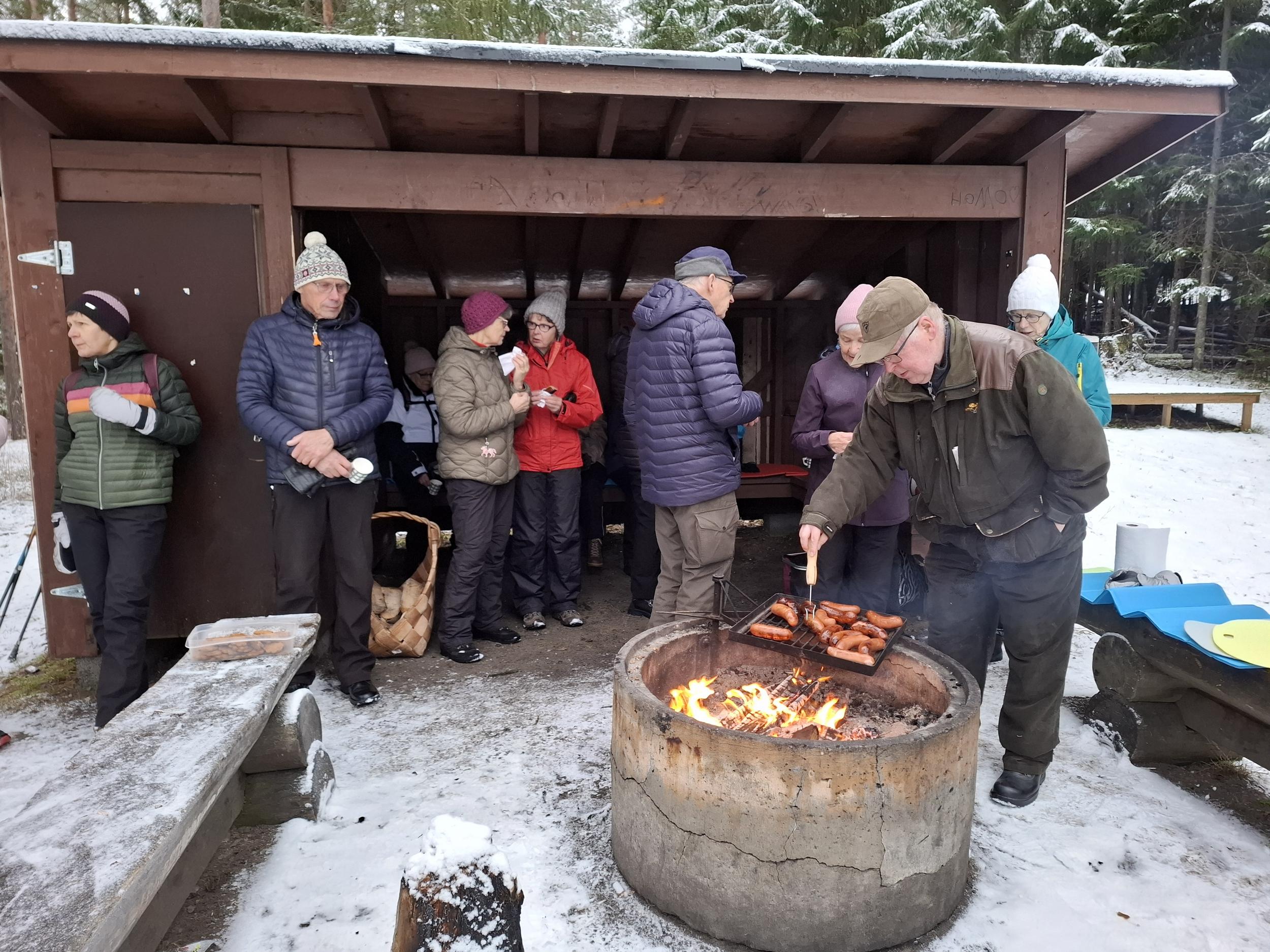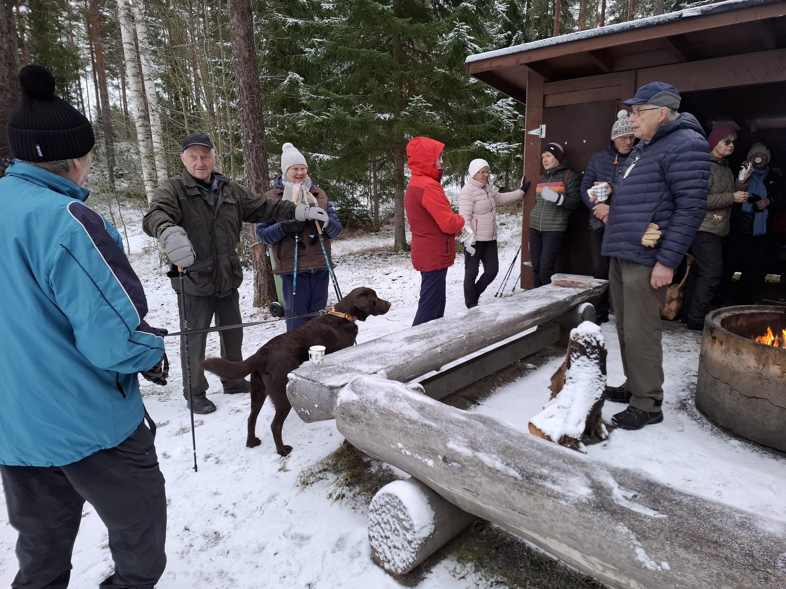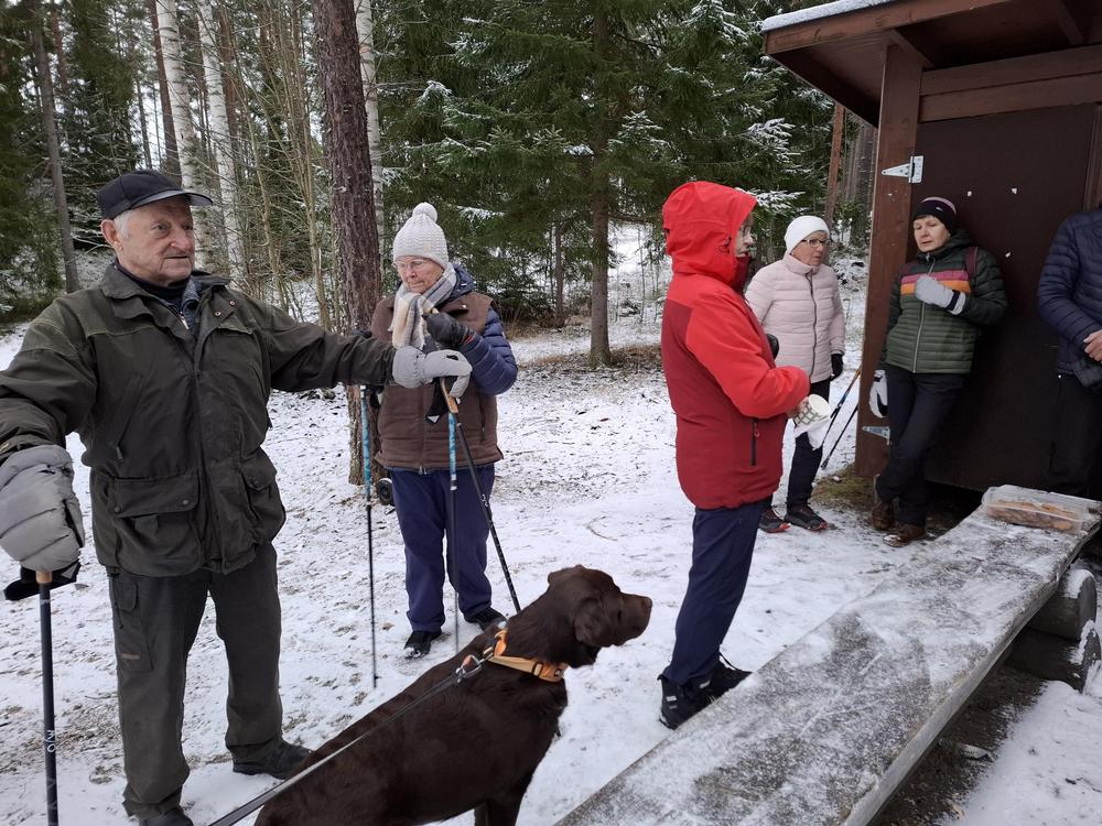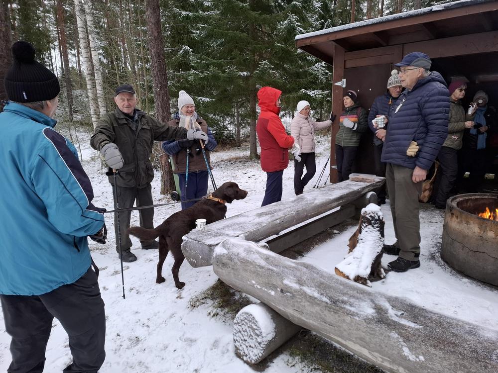 Marraskuun viimeisenä torstaina kokoonnttiin Pikku-Sappeen laavulla. Osa reippaili perille kävellen. Lähes kolmekymmentä senioria ja yksi koira viettivät kivaa iltapäivää ulkoillen yhdessä ja kuumaa glögiä hörppien. Nuotiomakkarakin maistui hyvältä. Senioriseurassa et ole ikinä yksin. (Kameran takana olivat Markku ja Riitta Ranta sekä Tiina Kokkola.)