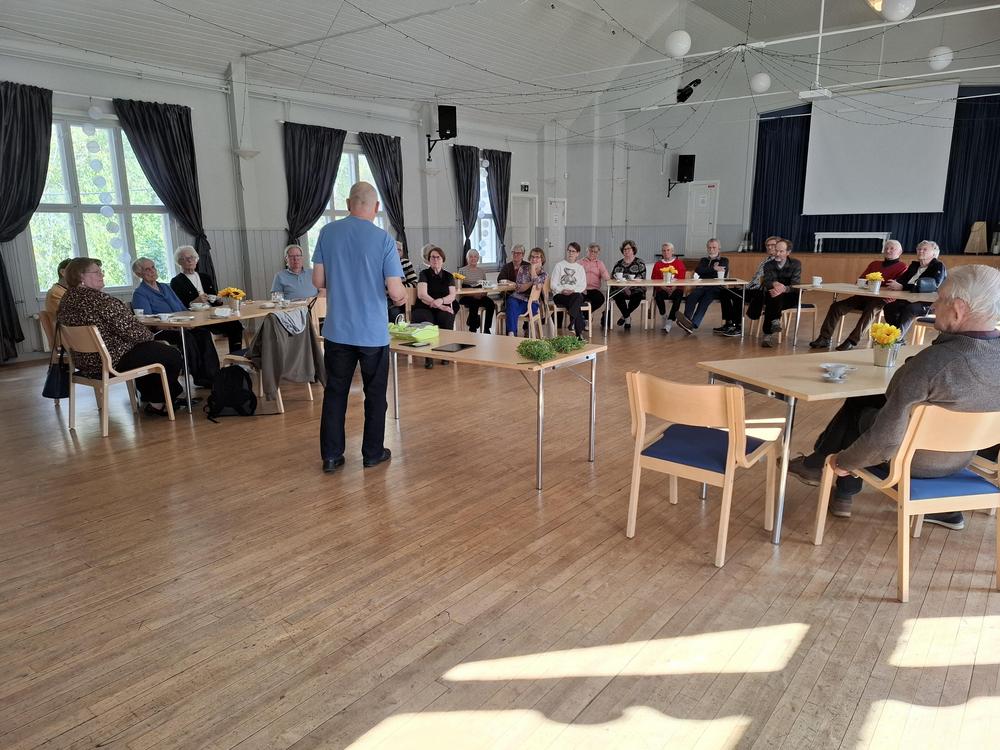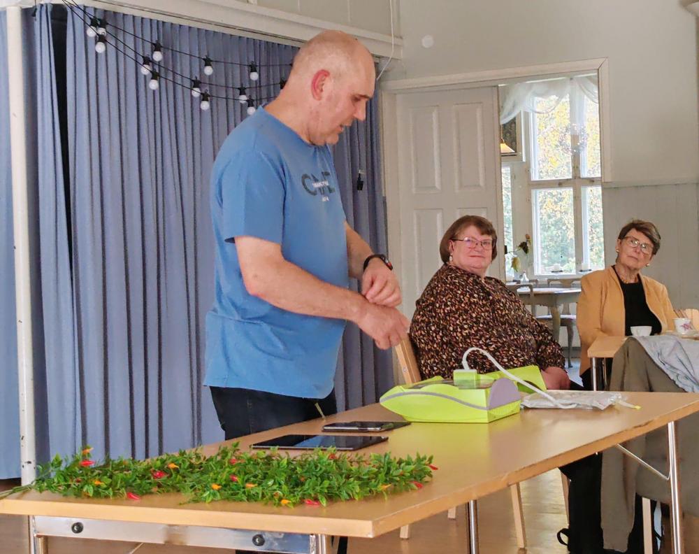 Sairaanhoitaja Timo Niemi kertoi defibrillaattorin (sydäniskurin) käytöstä. Nyt Pälkäneen seniorit tietävät, kuinka se toimii, kuinka sen kanssa toimitaan ja missä tilanteissa se auttaa. Katso 112-sovelluksesta, missä Pälkäneellä sydäniskuri löytyy.