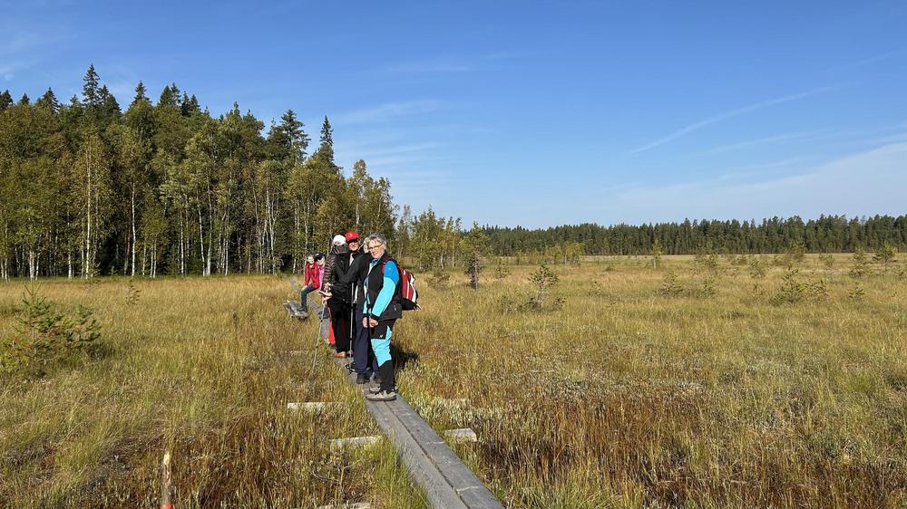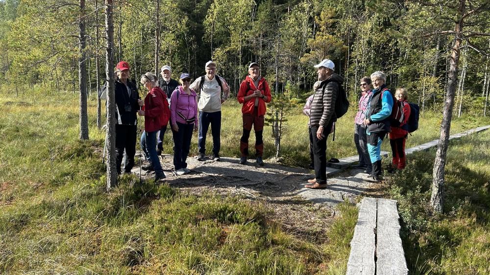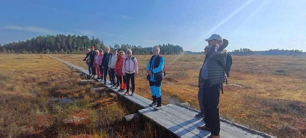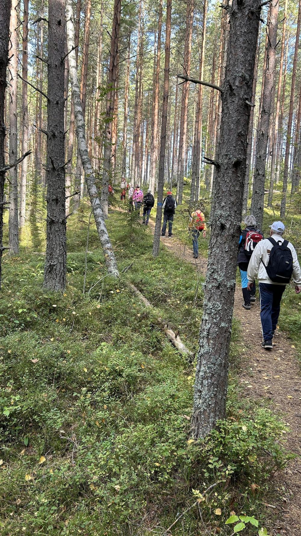 Iloinen tusina senioreita patikoi aurinkoisessa ja lämpimässä syyssäässä Siikanevan suoalueella. Matkaa kertyi useampi tunti. Paikoin vaativakin reitti metsäpoluilla ja pitkospuilla onnistui kaikilta hienosti. Tässä alla tunnelmia kuvin, joita nappasivat Riitta Ranta ja Harri Kauttu.